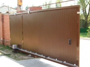 • Конструкция откатных ворот с кирпичными столбами