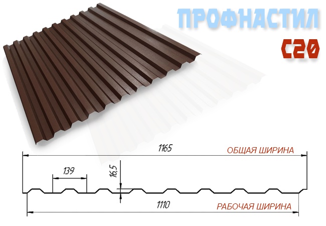 Профнастилы марок С20 и С21 предназначены для обшивки стен и сооружения заборов. Такие профлисты также можно использовать для кровельных работ. Несмотря на относительно небольшую высоту гофр, механическая прочность профиля достигается за счет их частоты и симметрии. Жесткость профиля, получаемая таким образом, является одной из основных причин популярности профлистов марок С20 и С21. Форма крайних гофр обеспечивает отличное соединение листов, что является дополнительным преимуществом.